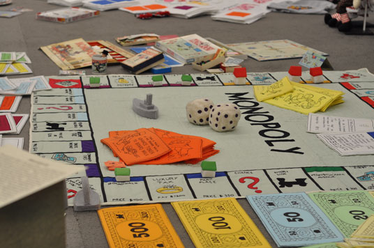 Amazing! Fabric money, fabric real estate cards, fabric dice and game pieces.