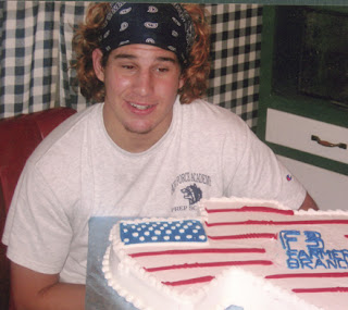 Jason headed off to the Air Force Academy. When we were packing Kay’s stuff to move, we actually found all of the hair that is on Jason’s head in this picture. He had shaved his head before leaving. We thought we had found a dead animal.