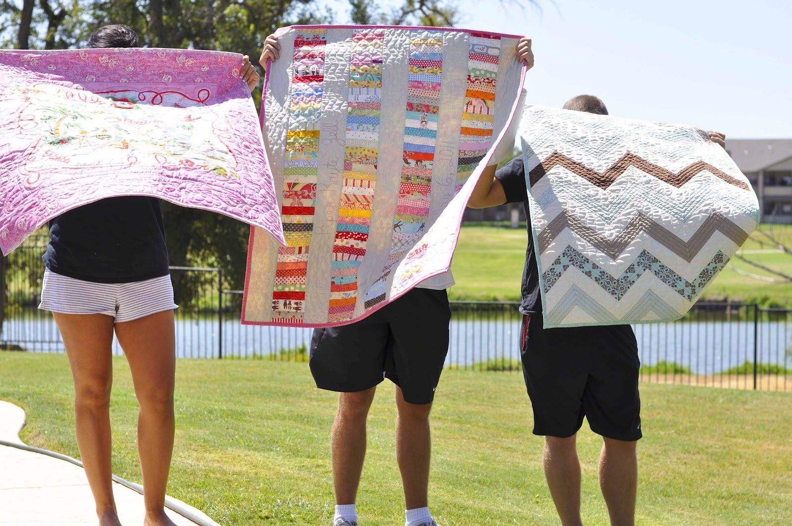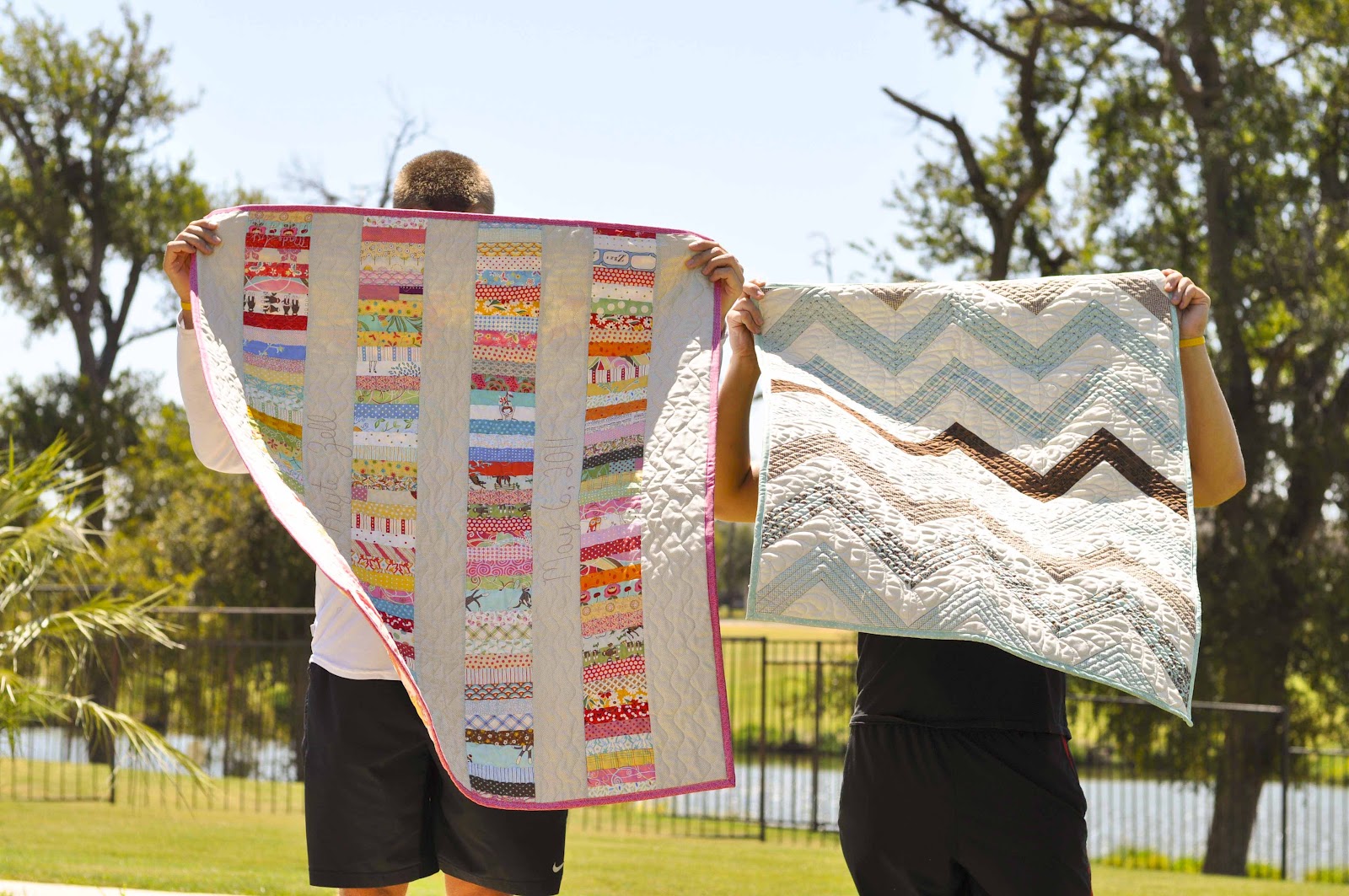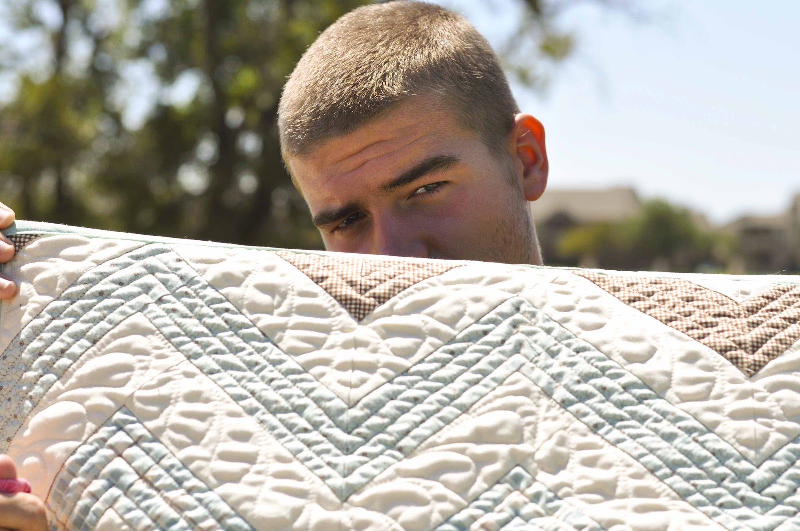 It looks like you all had lots of fun!! Your quilts are adorable!! Your sons, very handsome. What good sports they all three were for helping you out.