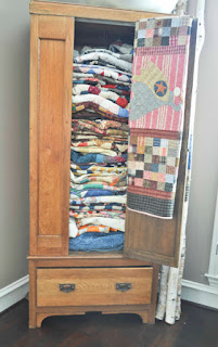 Some quilts were piled in a cabinet because I still plan on photographing and documenting each quilt, so why should they be neatly organized, Right?