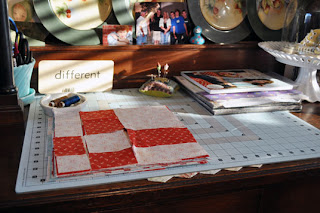 I sew on an old school teachers desk so I have these great pull outs on 2 sides to hold my fabrics. And a diet cherry limeade from sonic is a must.