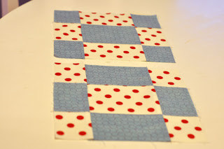 Repeat this process until all of the first 2 sections of the nine patches are done. You will be left with a nice tidy stack in the correct order to add to the other sections.