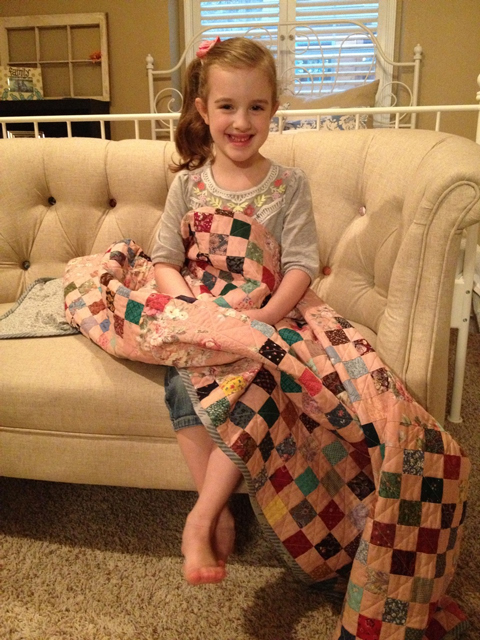 I had to add some grey squares as that is one of her favorite colors and it certainly added a vintage feel to the quilt.