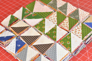 Once my triangles were sewn and pressed, they were sorted into stacks to swap.